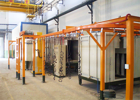 涂裝流水線的七大組成部分主要包括:前處理設備、噴粉系統、噴漆設備、烘爐、熱源系統、電控系統、懸掛輸送鏈等。